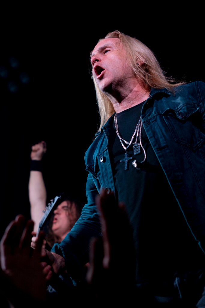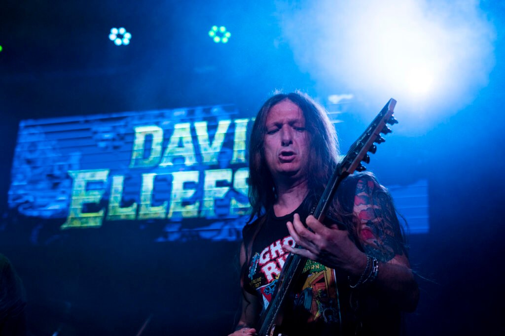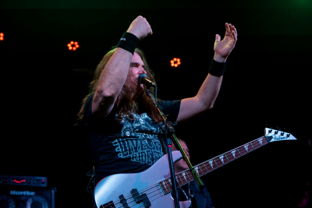 After a few minutes’ delay, with the curtain closed, the first chords began to play, and the audience exploded! The great Ellefson appeared on stage, launching into “Dawn Patrol,” a well-known Megadeth song, which prompted the fans to start jumping and singing along.