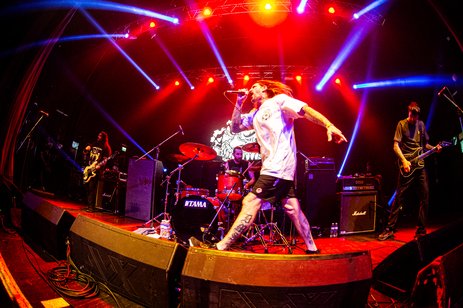 The next one was “Join the Army”, followed by “Lovely” (a rare track on the setlist, a fan favourite from “Lights, Camera, Revolution”). Before introducing the following song, Mike gave us all some advice about not letting anyone tell us how to live our lives, and to stand for what we feel is the right thing to do, and that’s how we got into “Freedumb”, where Ben jumped into the crowd and kept on playing guitar as the people were holding him. This kind of intensity remained the whole show!
