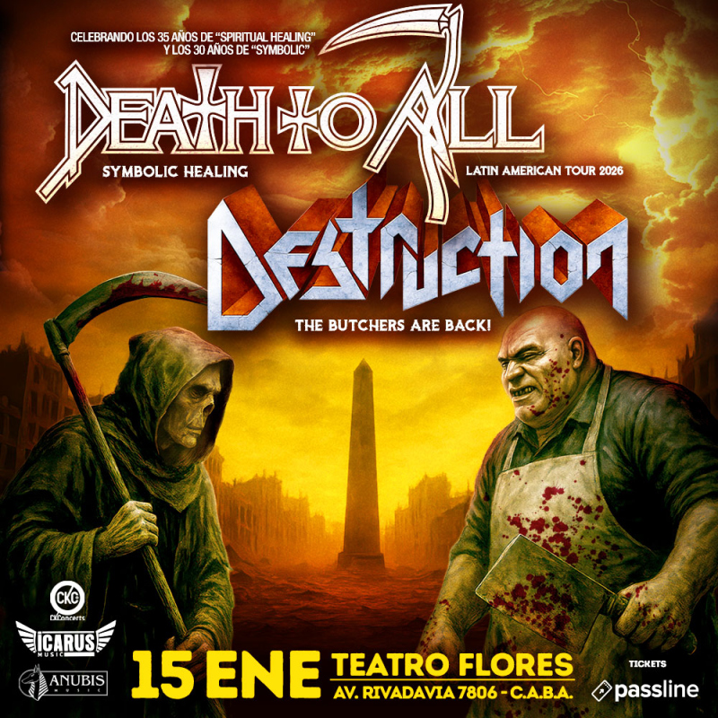 Luego de contarles un poco de las bandas, DEATH TO ALL y DESTRUCTION llegan juntos con Symbolic Healing , The Butchers Are Back Tour 2026, llega a la Argentina el próximo 15 de Enero en Teatro Flores, (Av, Rivadavia 7806.C.A.B.A)