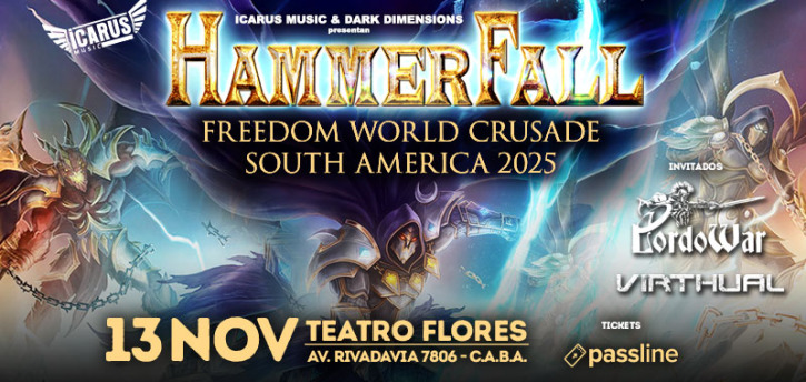 Formada en 1993 en Gotemburgo, Suecia, HammerFall se ha consolidado como una banda fundamental del power metal europeo. Con una sólida carrera que ha influido a generaciones completas de metaleros, los suecos liderados por Joacim Cans y Oscar Dronjak regresan a la Argentina con una noche repleta de himnos, potencia y espíritu guerrero. El setlist incluirá tanto los nuevos temas como los clásicos infaltables como Hearts on Fire, Last Man Standing o Let the Hammer Fall.